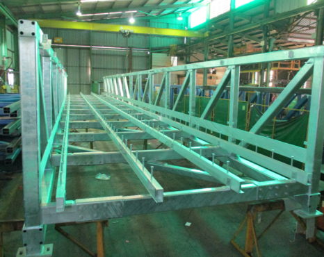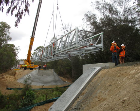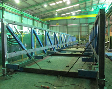 The bridges were fully assembled at our Darra factory before being transported complete to be lifted straight into position by the client. All 3 bridges were landed sucessfully onto pre-installed anchors